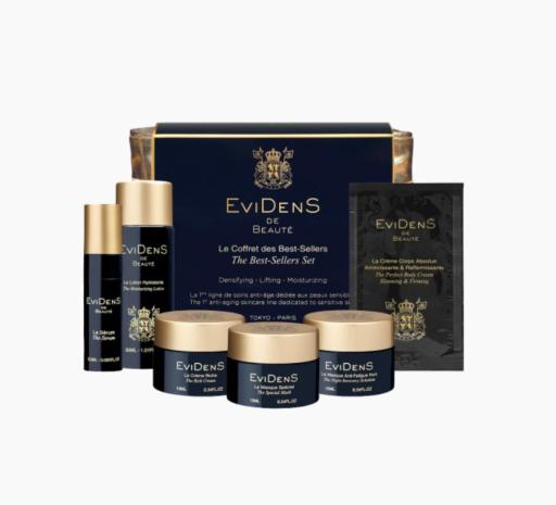 Densifica, reafirma e hidrata tu piel con el Set de los Más Vendidos de EviDenS de Beauté, una marca de cosméticos de lujo franco-japonesa, inspirada en los secretos de belleza de Japón y perfeccionada con la elegancia francesa. Estos cosméticos japoneses están disponibles para la venta en línea, ofreciendo a mujeres y hombres productos de belleza que satisfacen todas sus necesidades de cuidado de la piel. Con 5 productos superventas, este set ofrece una rutina completa que mantendrá tu piel con un aspecto impecable.