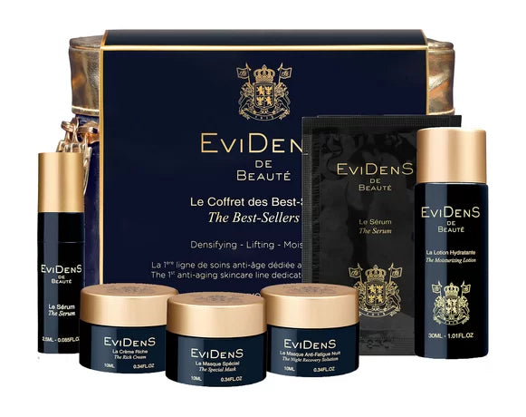 El kit también incluye 6 muestras que te permitirán descubrir la lujosa marca EviDenS de Beauté, mientras realzas tu piel con los productos favoritos de todos los tiempos de la marca.